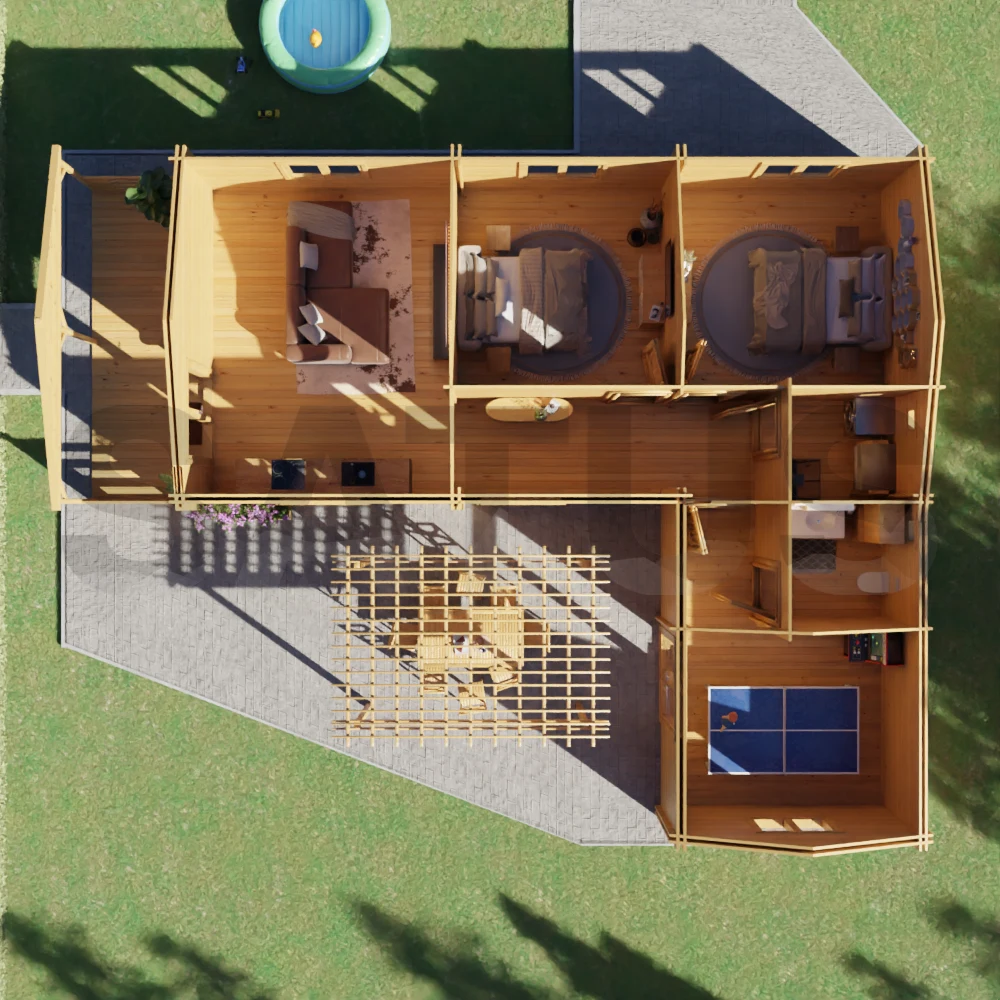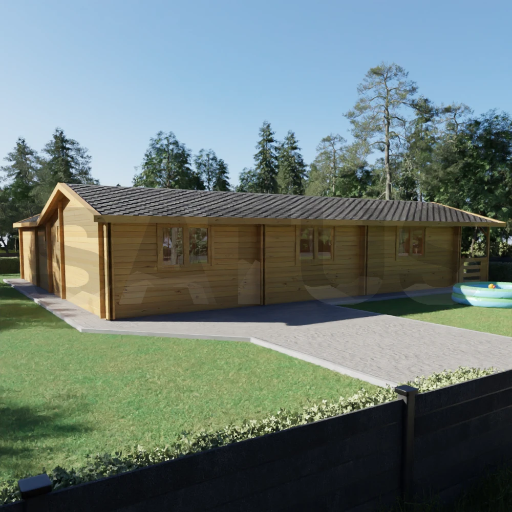 Es la opción perfecta para quienes buscan una casa de madera moderna y sostenible, ideal para teletrabajar, dedicarse a sus hobbies o disfrutar del descanso y la convivencia familiar. Su diseño clásico, junto con una distribución práctica y equilibrada, hacen de la Alicante un hogar cómodo, versátil y con encanto mediterráneo.