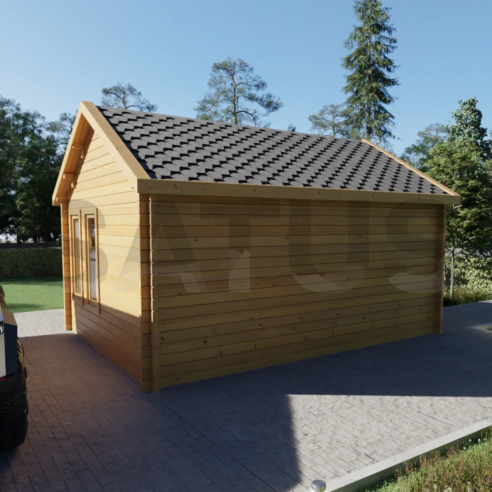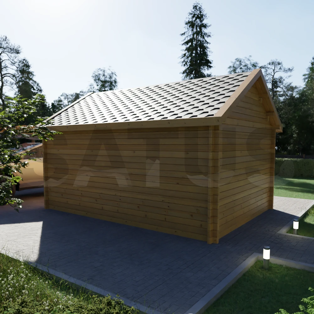 Elige tejado de chapa con canalones o tejas bituminosas en varios colores. De forma opcional, se pueden añadir tableros OSB y mallas impermeables para un mejor aislamiento.
