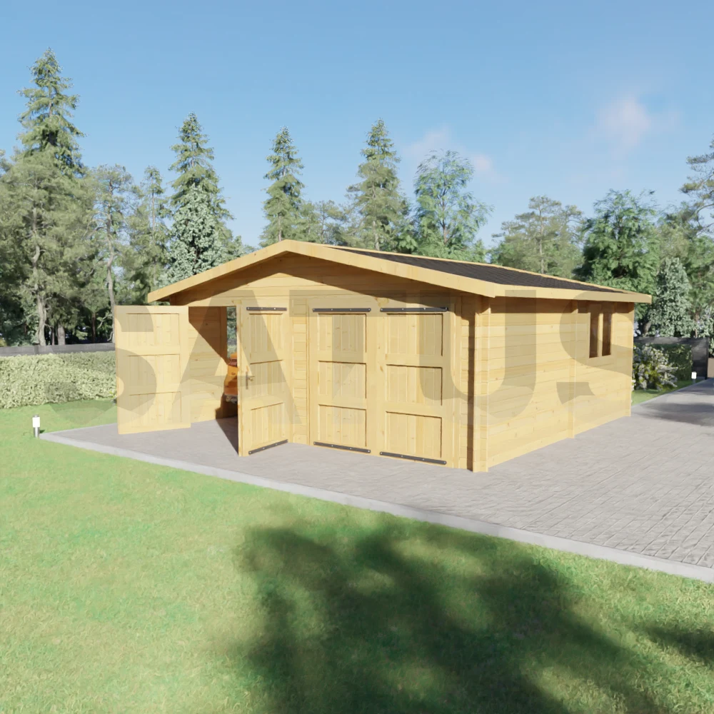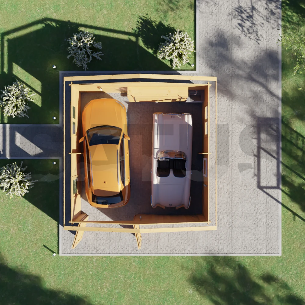 El Garaje Doble Tradicional es una estructura de madera prefabricada y espaciosa, diseñada para albergar de forma segura dos coches u otros vehículos. Sus amplias ventanas laterales inundan el interior de luz natural, creando un entorno más luminoso y agradable para el trabajo o el acceso diario.