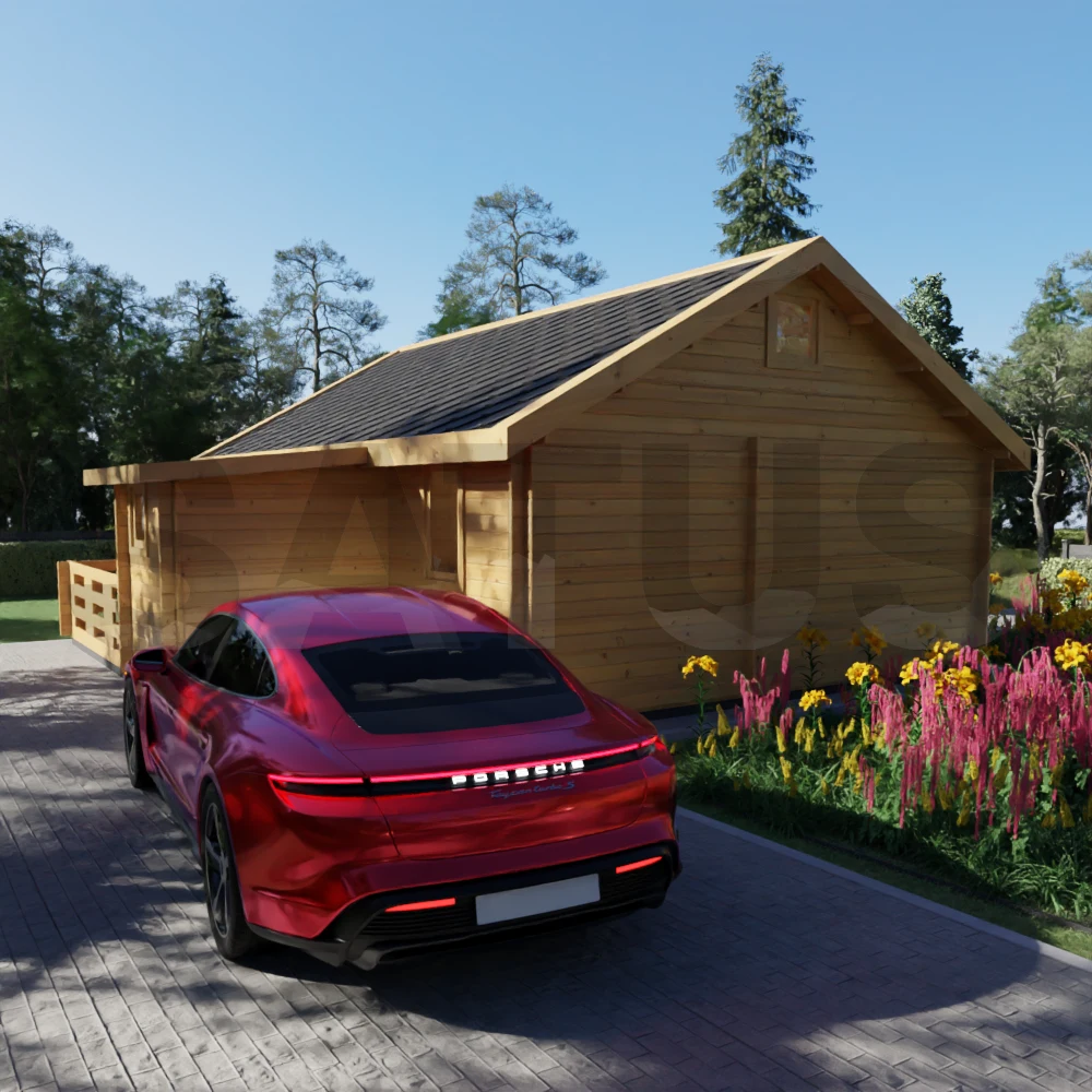 Elige tejado de chapa con canalones o tejas bituminosas en varios colores. De forma opcional, se pueden añadir tableros OSB y mallas impermeables para un mejor aislamiento.