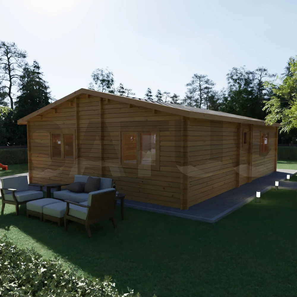 La Cabaña Tradicional “Seda” es una vivienda de madera prefabricada de una planta, con un tejado a dos aguas clásico que combina estética atemporal y confort moderno. Su interior está cuidadosamente distribuido en cinco estancias, ofreciendo espacio y versatilidad para adaptarse a distintas necesidades.